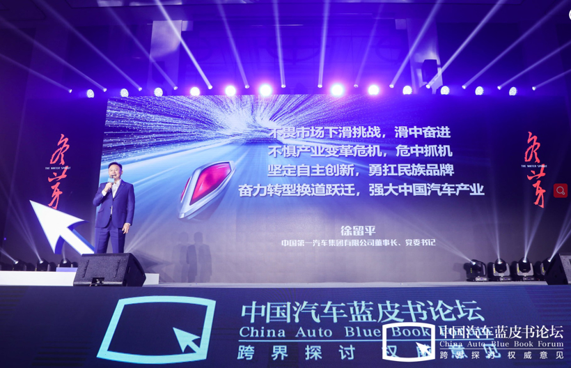 中国一汽董事长、党委书记徐留平发表了《不畏市场下滑挑战,滑中奋进 布局产业变革危机,危中抓机 坚定自主创新,勇抗民族品牌 奋力转型换道跃迁,强大中国汽车产业》为主题的演讲。