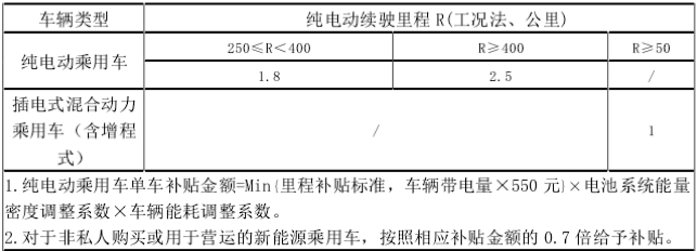 也就是说,2020 年 1-4 月的补贴金额依然按照 2019 年的新能源汽车补贴标准(参见下表)进行计算,而 5-6 月处于过渡期需按照上述通知进行计算。