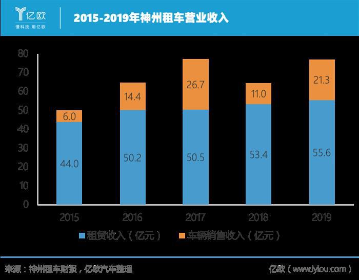 据神州租车2019年财报,公司2019年度总收入76.91亿元人民币,同比增长19.3%。租赁业务营业收入为55.6亿元,同比增长仅为4.1%,增速下降。