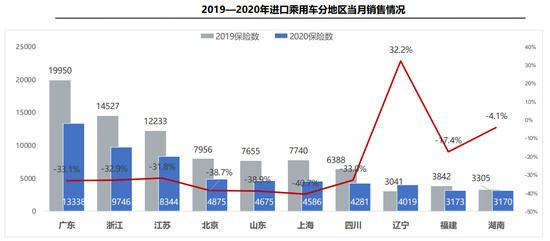 整体来看,疫情对中高端市场影响相对较小。上半年,大型和中大型进口车细分市场份额相比2019年均有所提升,分别达到2.2和6.5个百分点。其他细分市场份额则均有所减少,其中比较明显的是中型和紧凑型进口车,其份额分别减少5.1和2.7个百分点。