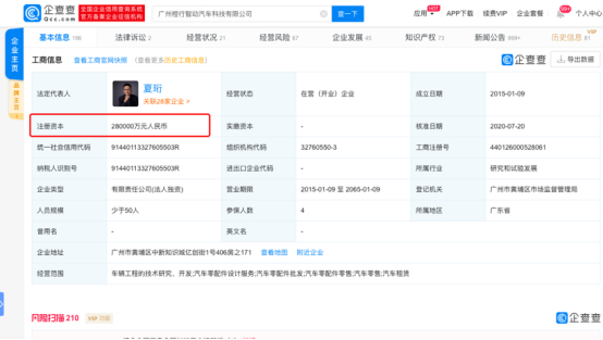 广州橙行智动汽车科技有限公司工商信息;图片来源:企查查
