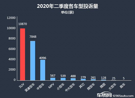 2020年二季度,随着国内疫情逐步得到控制,国内SUV市场终于有所回暖,二季度SUV车型销量重返200万辆大关,环比上涨48.9%。同期,国内SUV车型投诉环比同样出现明显增长,投诉量再次突破万宗,较一季度上涨52.9%。